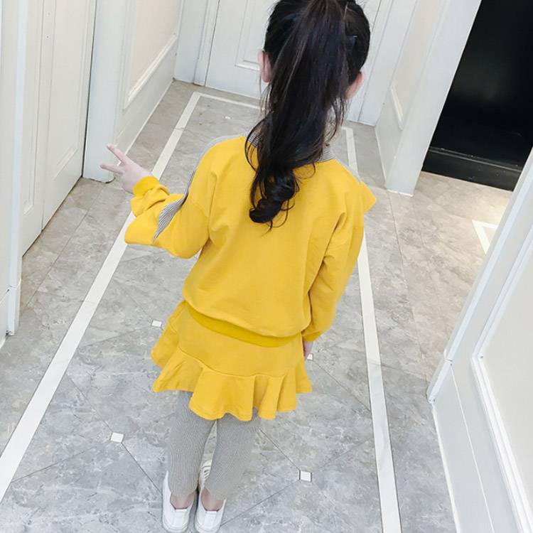 送料無料 セットアップ 子供服 女の子 長袖Tシャツ スカッツ レギンス 重ね着風 フリル 長袖 フレアスカート 純色 無地 切り替え 伸縮性 可愛い カジュアル 二点セット 上下セット 秋新作