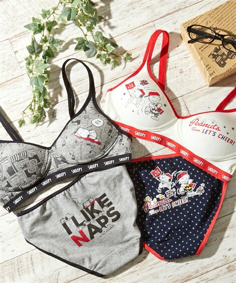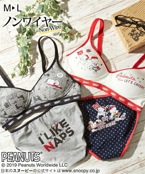 【楽天スーパーSALE 送料無料】キャラクター モールドカップ ノンワイヤー ブラジャー ブラ ショーツ パンツ ペア 上下 セット スポーツブラ スポブラ ブラトップ 下着 インナー スヌーピー 綿 コットン 綿混 レディース 女性 婦人 女の子 ジュニア ガールズ M L
