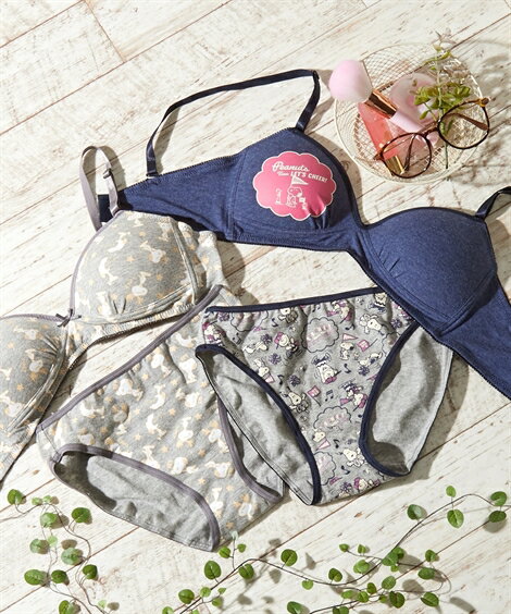 ブラジャー ショーツ セット レディース 綿混 スヌーピー キャラクター デザイン アンダー広幅テープ モールドカップノンワイヤー クリーム/グレー M/L ニッセン